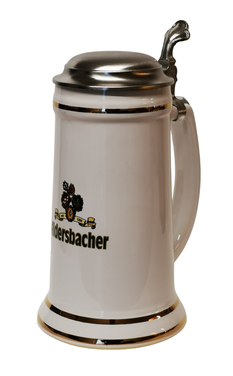 Keramik Krug "Minister" mit Zinndeckel und Gravur