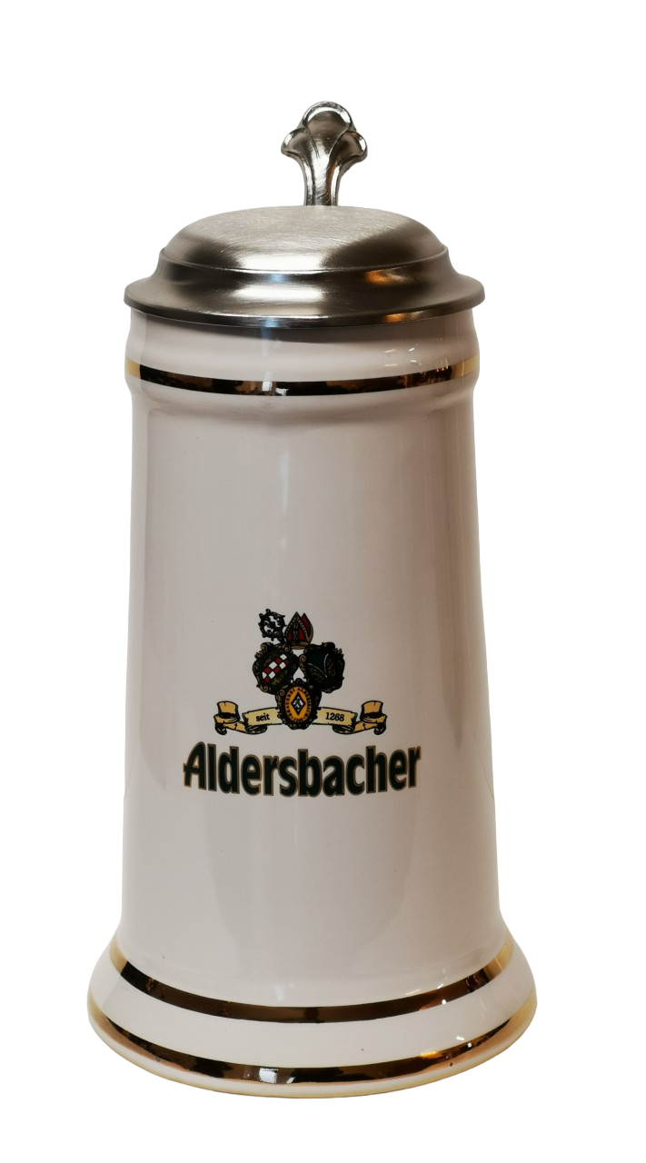 Keramik Krug "Minister", 0,75l mit Zinndeckel und Gravur