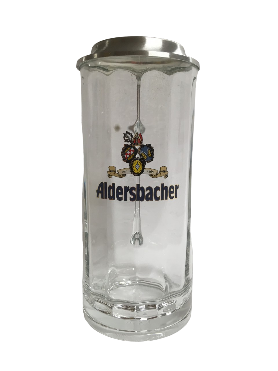 Glaskrug "Aldersbacher" mit Gravur und 4 Flaschen Festbier mit persönlichem Etikett