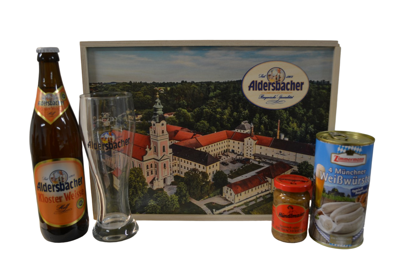 1 Flaschen Aldersbacher Kloster Weisse hell á 0,5 Liter (Pflichtangaben gemäß Lebensmittelinformations-VO (EU): Zutaten: Wasser, WEIZENMALZ (ENTHÄLT GLUTEN), GERSTENMALZ (ENTHÄLT GLUTEN), Hopfen, Hefe. Alk. 5,3% vol.)