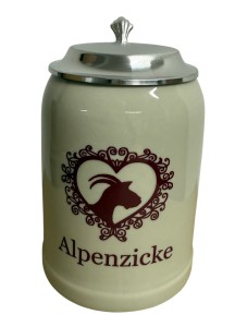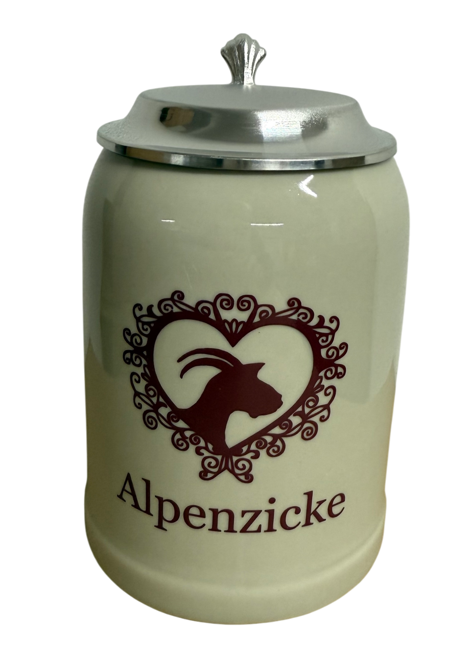 Kannenbäcker Krug 0,5 l "Alpenzicke" mit Zinndeckel und Gravur
